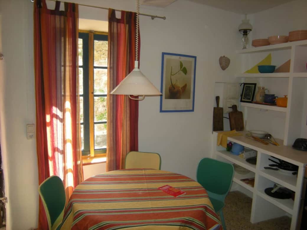 Située au cœur du village, au cœur des Corbières, au cœur du sud de la France. Au cœur du village, au bord de la rivière, près des marchés, en bord de mer, et même en Espagne. Une maison de Molière pleine de style. Une grande cuisine, une charmante salle de bain, un intérieur varié et un balcon ensoleillé sur le toit. Depuis l'étroite ruelle, on entre comme par un rideau de théâtre et on est impressionné par le jeu de couleurs de l'intérieur.